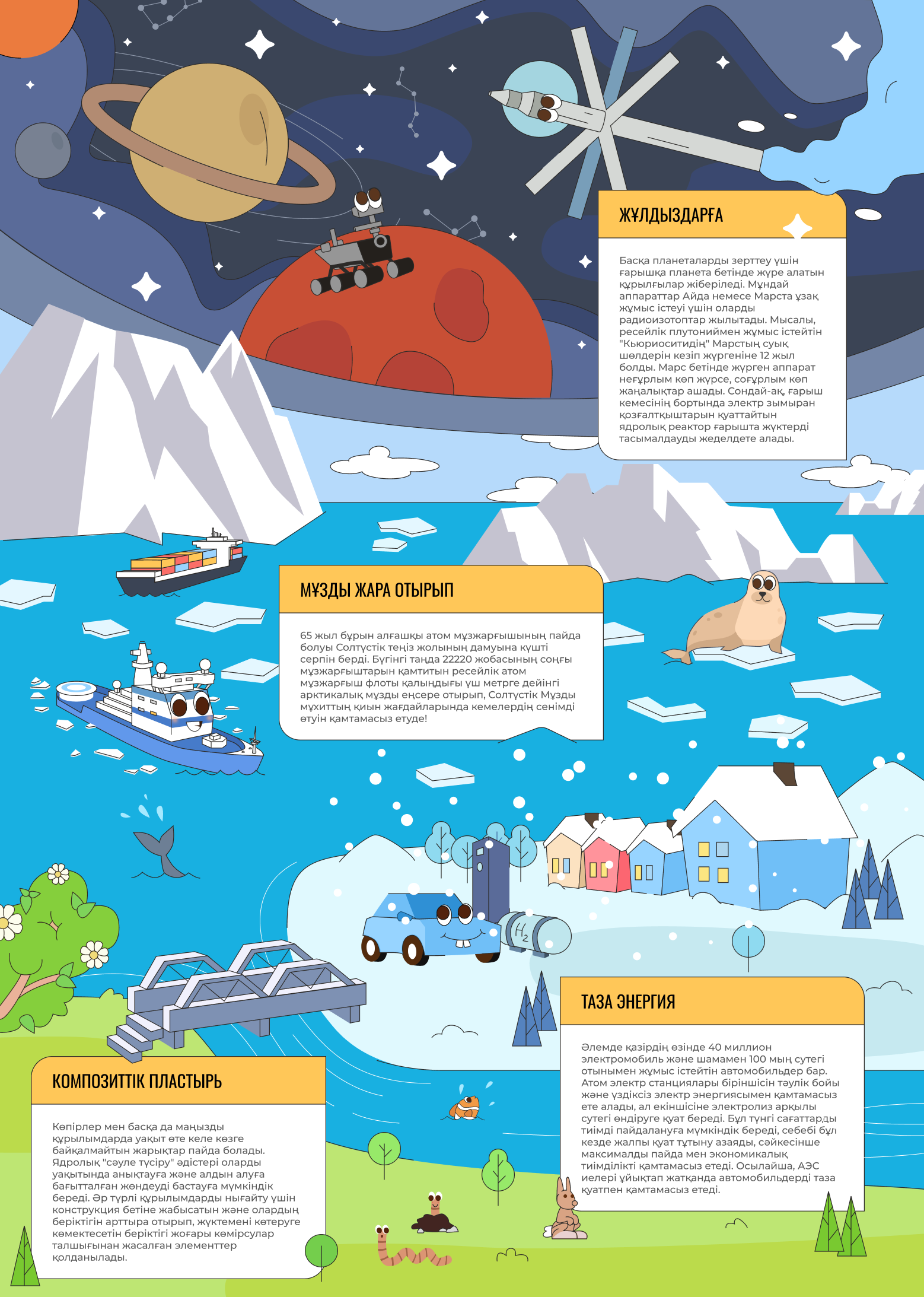Бұл жай ғана басқатырғыш емес — бұл ғарыш кемелерінен бастап жоғары технологиялық фермерлікке дейінгі атомның ең керемет қолданысын табу мүмкіндігі. Пазлдарды жинаңыз, тұспал кеңестерді табыңыз және атом технологиясы біздің әлемді қалай өзгертетінін біртіндеп біліңіз!
