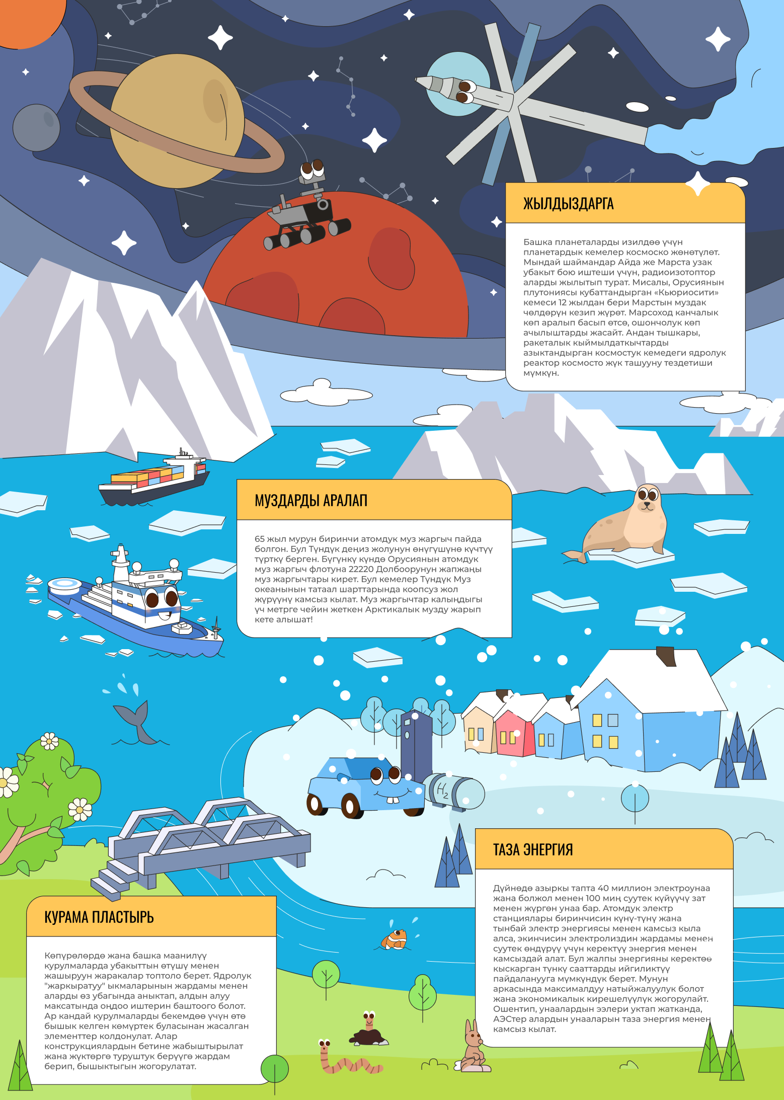 Бул жөн гана баш катырма эмес — бул атомду эң сонун колдонмолорун табуу мүмкүнчүлүгү: космостук кемелерден баштап, жогорку технологиялуу дыйканчылыкка чейин. Пазлды чогултуп, ачкычтарды ачыңыз жана атом технологиясы биздин дүйнөнү кандайча өзгөртүп жаткандыгы тууралуу алыңыз!